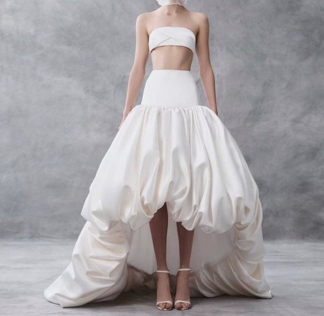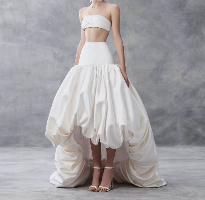 Vokuhila Taft Rock für die Braut mit Volants in Weiß