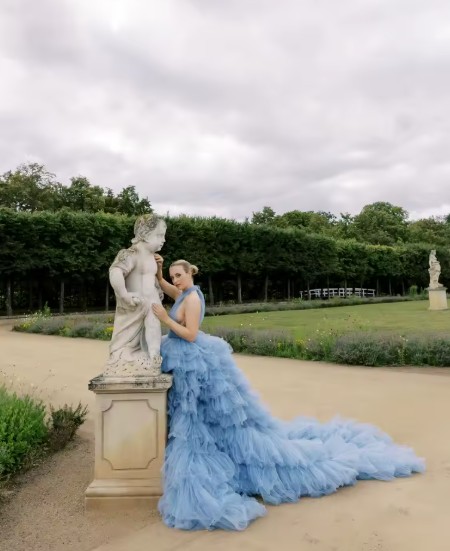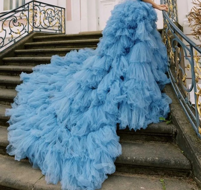 Romantic tulle maxi skirt for the bride with ruffles in blue
