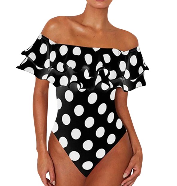 Off-the-shoulder swimsuit Sixtina Black Polka Dot