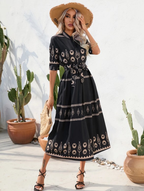 A Linie Sommerkleid Jella Elegant Wadenlang in Schwarz