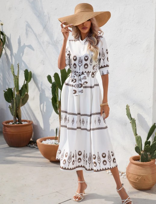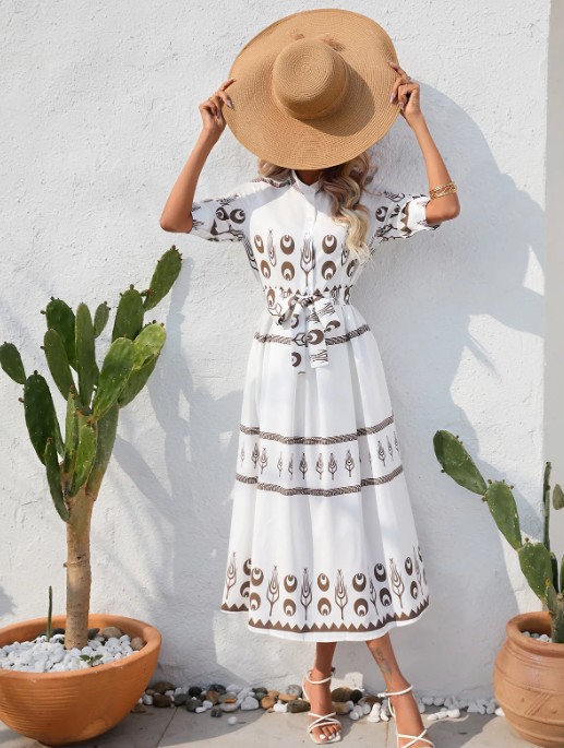 A Linie Sommerkleid Jella Elegant Wadenlang in Weiß