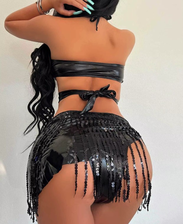 Glitzer Pailletten Halterneck Bikini Samira Schwarz