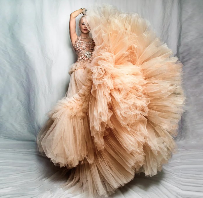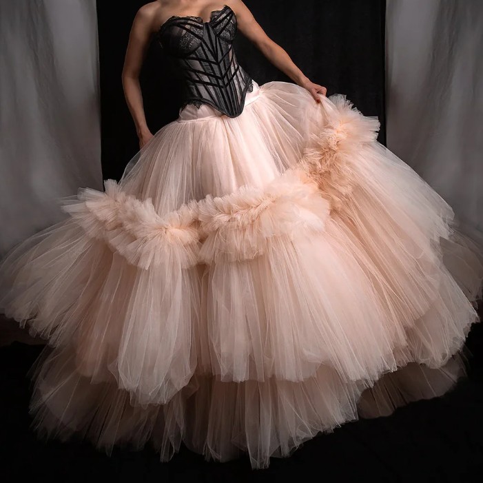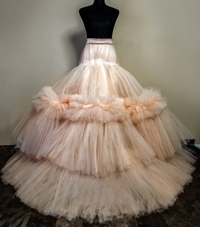 A-line maxi tulle skirt Jolene for the bride in champagne with ruffles