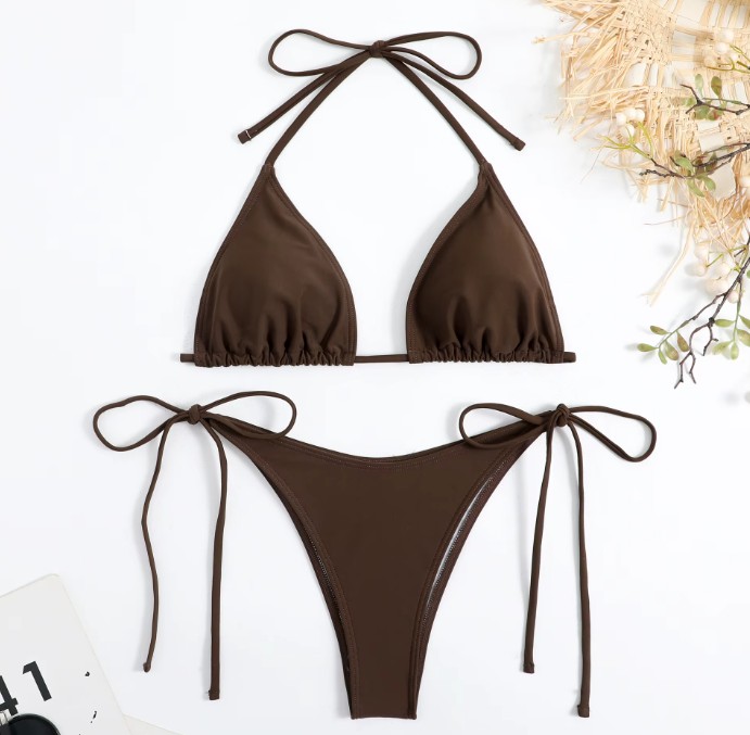 Halterneck Bikini Saviya zum Binden in Braun