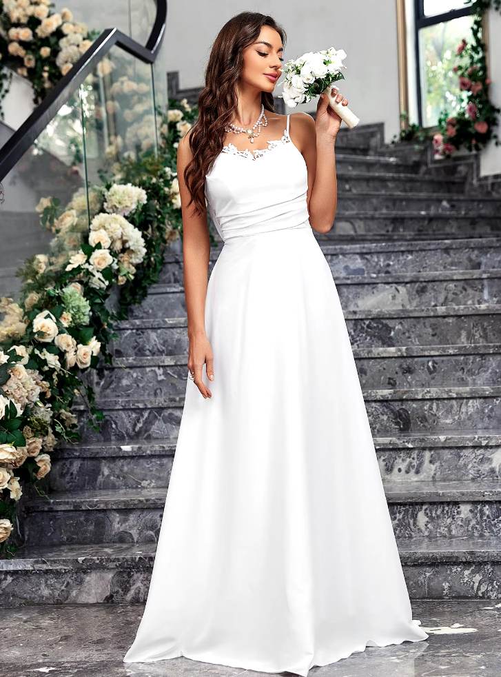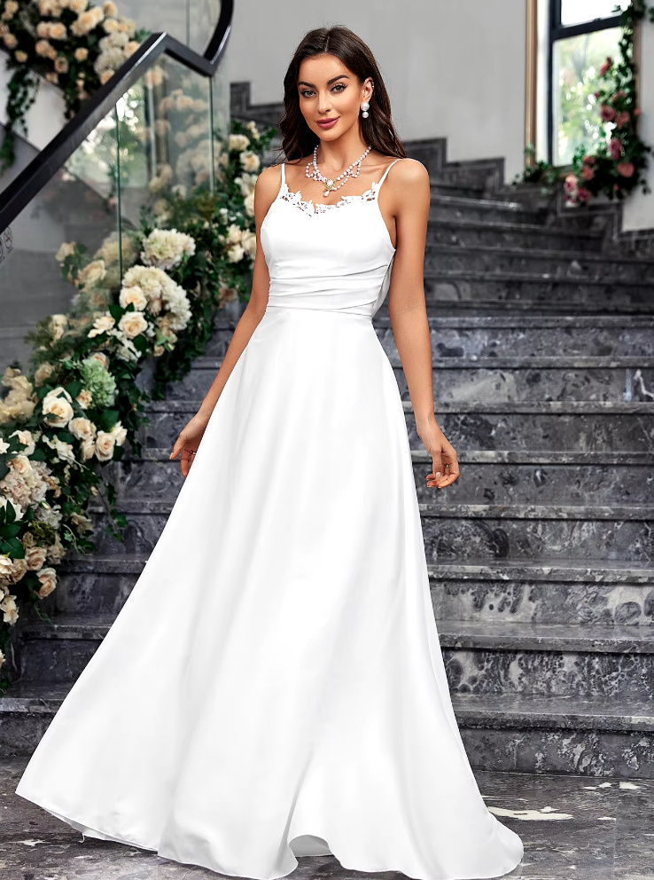 A-line spaghetti strap civil wedding dress Clarice with back cutout