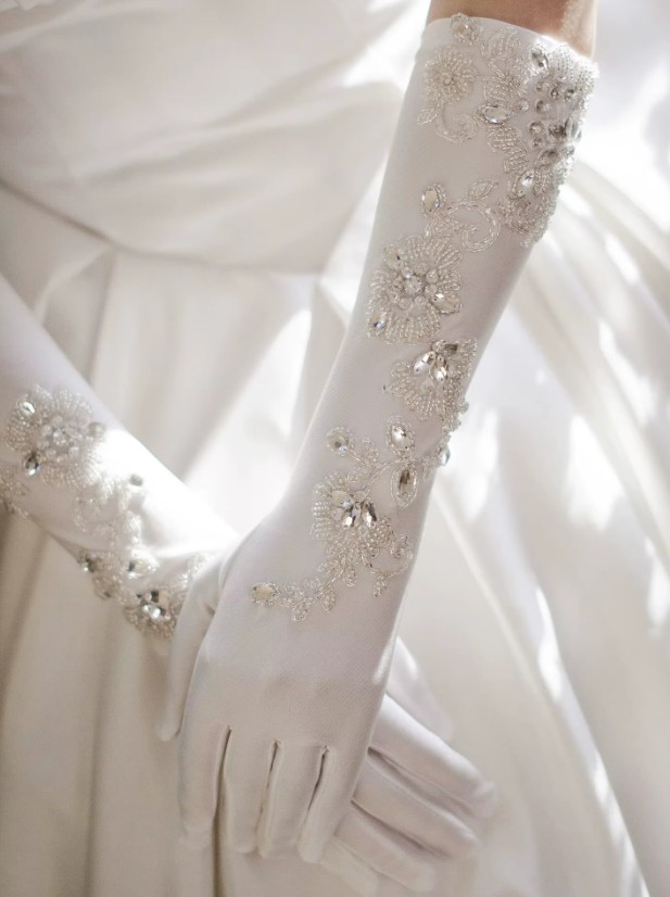 Elegante Hochzeit Braut Handschuhe Juliane Lang mit Strass und Spitze