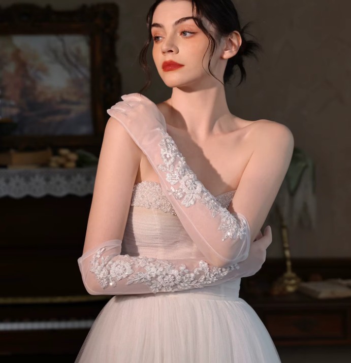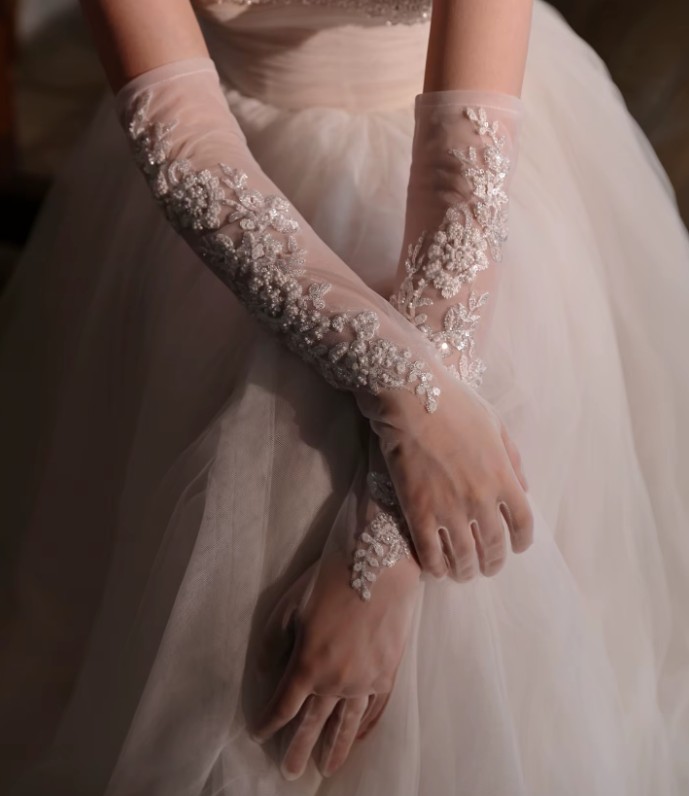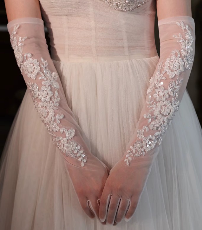 Long bridal gloves with lace