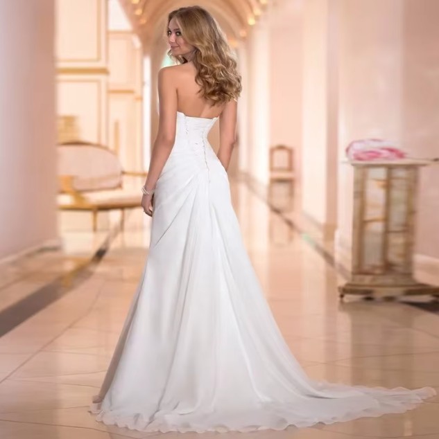 Schulterfreies Empire Brautkleid Janne Schlicht mit Pinselschleppe