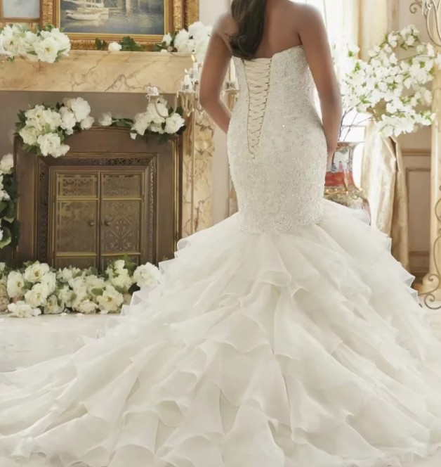 Schulterfreies Meerjungfrau Brautkleid Jaqueline mit Spitze Pailletten und Volants