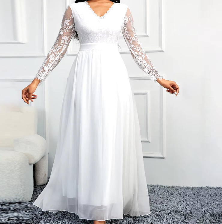 A-line chiffon civil wedding dress Cathrine with tattoo lace