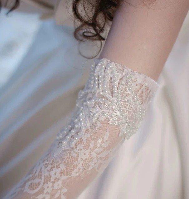 Elegante Hochzeit Brauthandschuhe Keola mit Perlen und Spitze