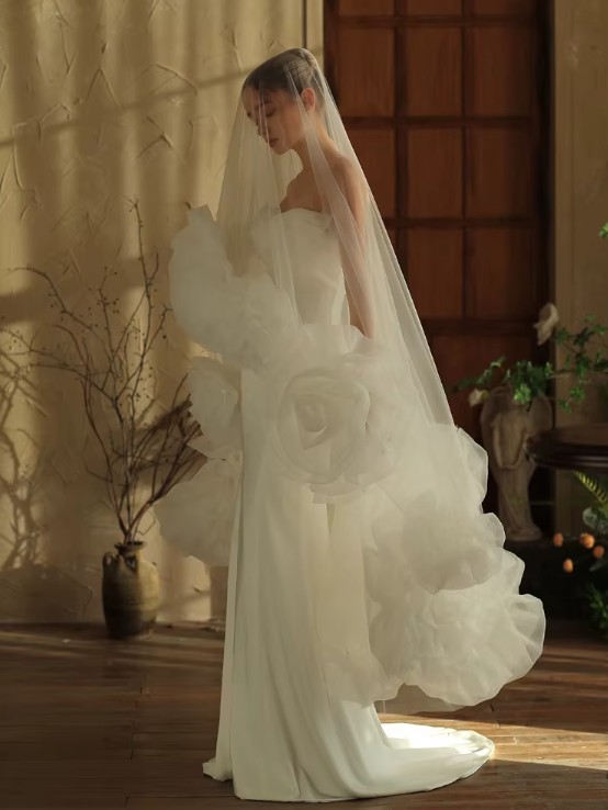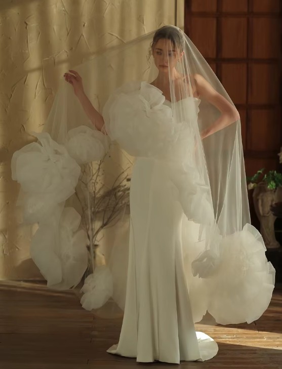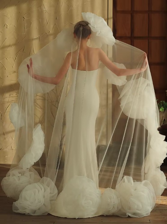 Tulle bridal veil Kennya with 3D roses