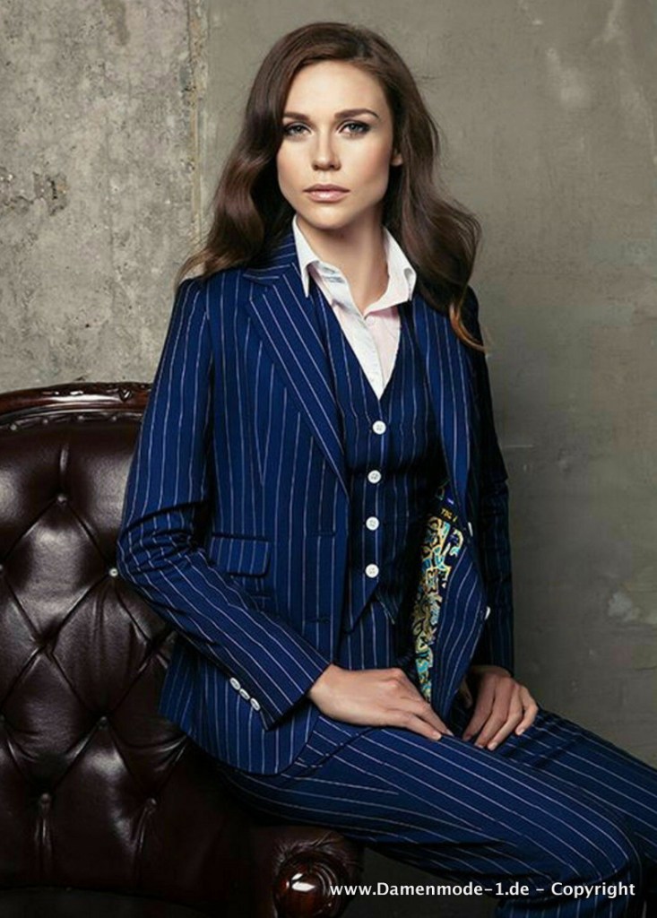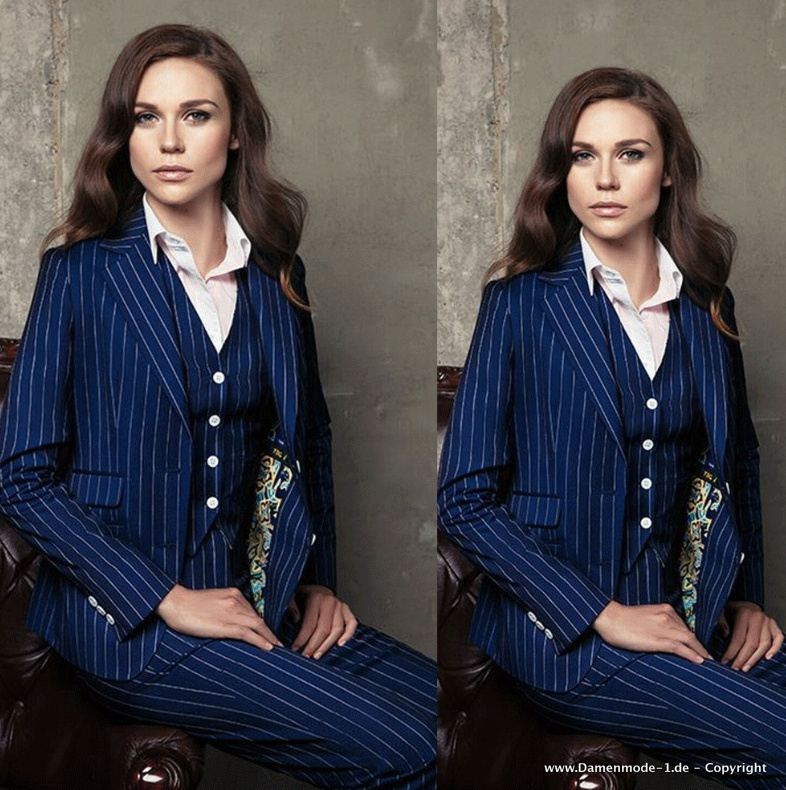 Eleganter Hosenanzug in Dunkelblau mit Nadelstreifen