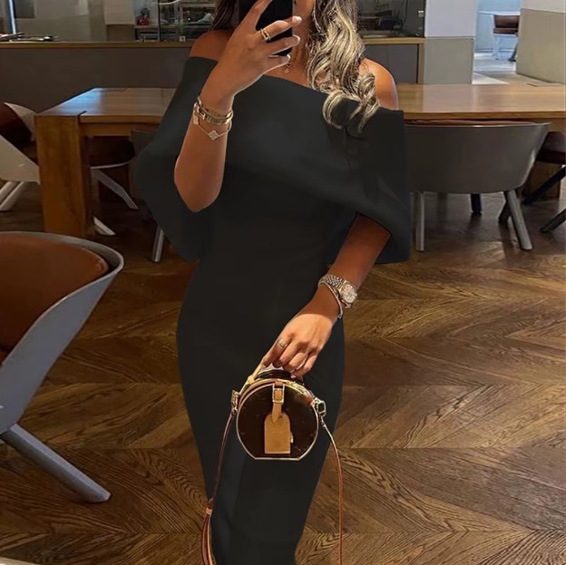 Elegantes Schulterfreies Sommerkleid Jenna in Schwarz