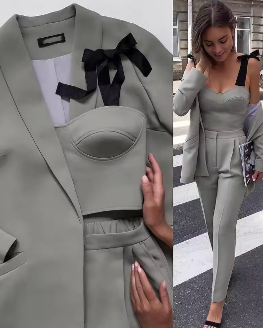 Jenny three-piece women’s pantsuit in silver-grey