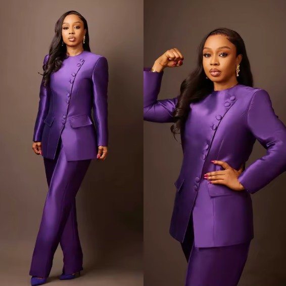 Eleganter Satin Damen Hosenanzug Jennifer in Lila